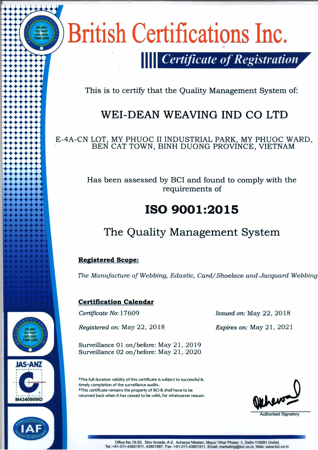 符合ISO9001國際認證,產品經過OEKO-Tex認證的環保規範標籤,並且設有專業實驗室替產品進行全面檢測,努力提供顧客最具品質的產品。